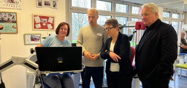 Im Austausch mit Thomas Isenberg (Geschäftsführer der Deutschen Schmerzgesellschaft e.V.), Dr. Jutta Maxeiner (ärztliche Leiterin der Schmerztagesklinik), Prof. Dr. Tobias Fink (Chefarzt der Klinik für Anästhesie, Intensivmedizin, Notfallmedizin und Schmerztherapie), Sabine Saal (stellv. Kaufmännische Direktorin) und Christoph Heuser (Physiotherapeut) wurde erneut deutlich, wie wichtig eine integrierte, multiprofessionelle Schmerztherapie für Patientinnen und Patienten mit chronischen Schmerzsyndromen ist – und wie gut dies hier umgesetzt wird.